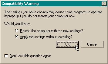 From the Color palette drop down menu, select High Color (16 bit) or better. Click on OK. The following dialog box will appear: